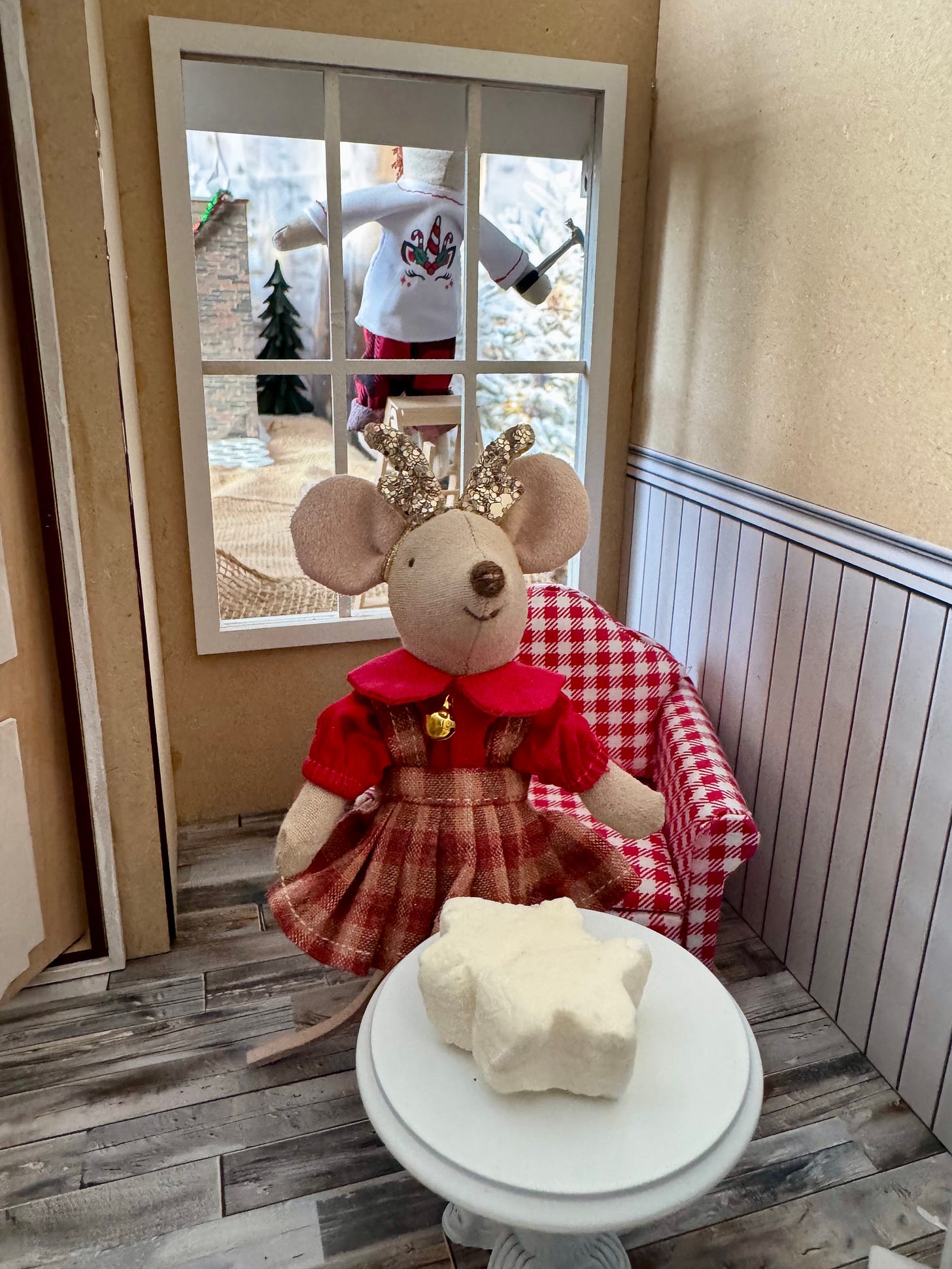 We got the chairs and table inside and took off all the protective wrapping. Lumi sat in the first one and sighed happily as she looked out the window. “Perfect for writing for the Candy Cane Chronicle!”